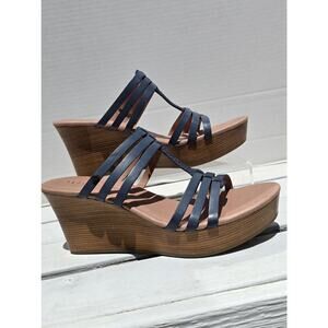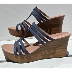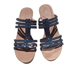 Ugg Mattie Platform Blue Strappy Leather Wedge Sandals Shoes Women’s Size 10