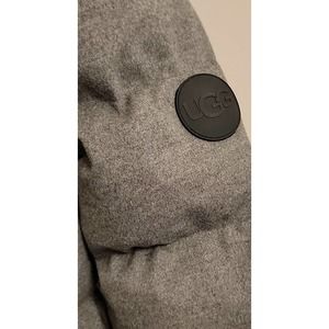 Dry clean only, this jacket is made by Ugg Australia and comes with tags attached. It is a great addition to any wardrobe, with a classic parka style and a versatile gray color. Ideal for men who appreciate quality and style, this jacket is perfect for layering and keeping warm.