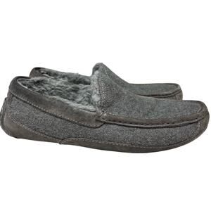 Ugg Mens Wool Felt, Suede, Sheepskin Gray Slip On Ascot Slippers 10