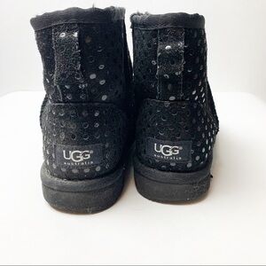 In excellent condition black shiny dot mini boots. Boot shaft height is 5”
