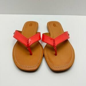 Ugg NWOB Tuolumne Coral Patent Leather Cushioned Summer Flip Flop Sandals