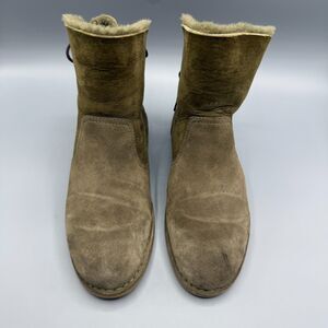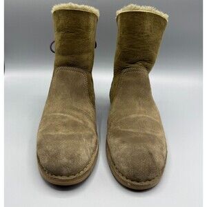Ugg Naiyah Green Suede Lace-Up Shearling Lined Booties Boots Size 10