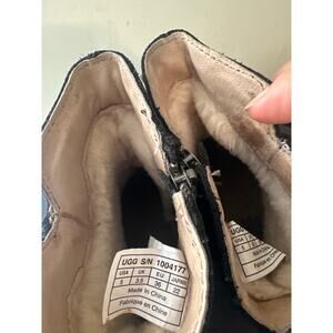 Ugg Neevah Short Boots Black Leather Ankle Zip Sheepskin Lined 1004177 Womens 5