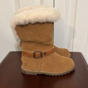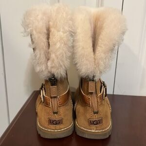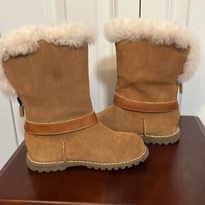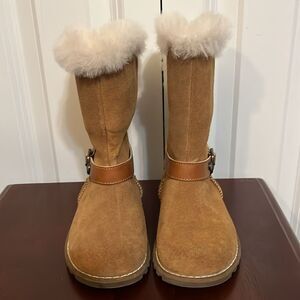 Ugg Nessa Tan Suede Leather Buckle Shearling Zip Up Back Girls Boots 9