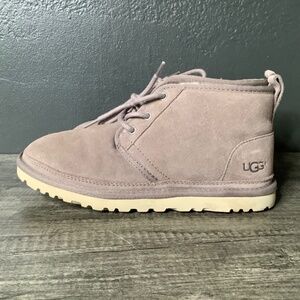 Combining premium materials and effortless style, our women's Neumel Boot is our iconic Heritage chukka. A timeless everyday laced boot made of rich suede, our women's chukka is lined in upcycled UGGplush™ wool and finished with a durable outsole for all-day cushioning, offering a signature slipper-like feel indoors or out. This suede chukka is available in a range of dark and light neutral colors including black and brown.