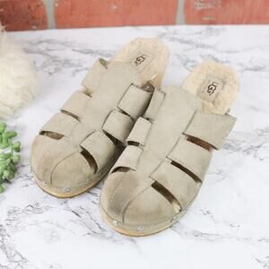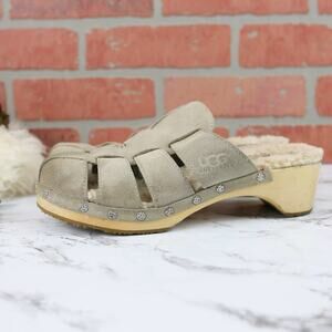 Ugg ORE Willow / Light Taupe Woven Suede Leather Wooden Clog Size 7 Women's