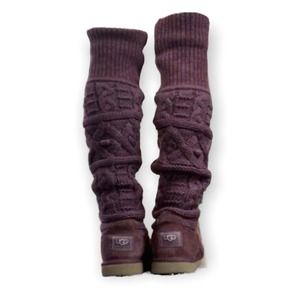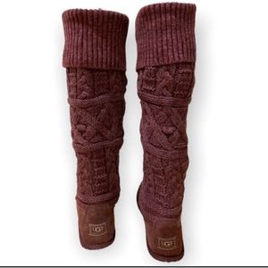 Ugg Over The Knee Twisted Cable Knit Boot Burgundy Size 6