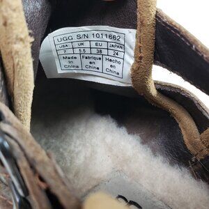 Ugg Patsy Ankle Boot Womens 7 Chesnut Suede Shearling Lined Boho Moto Buckle Zip