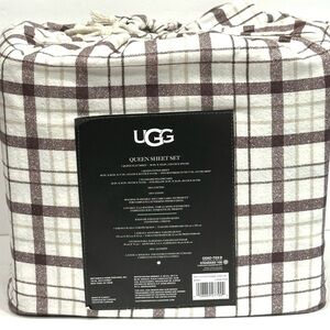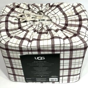 Ugg Queen Sheet Set Of 4 Cotton Flannel Lodge Checkered Burgundy 90”X102” Oeko-Tex, New **Free Shipping**