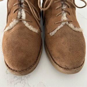 Ugg Quincy Cabincore Desert Boot Lace Up Suede Shearling Lined Tan Neutral Women's size 9