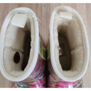 Ugg Rain Boots Women's Size 8 Classic Clear Mini Pixelate Rainbow Zebra Stripes