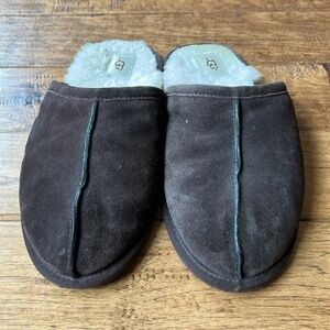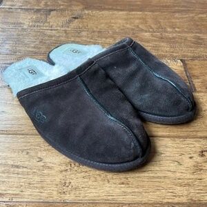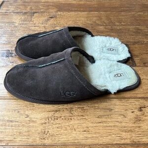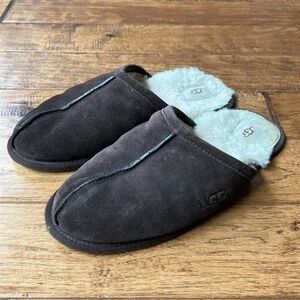 Ugg Scuff Slippers House Shoes Brown Suede Wool Shearling Lined Mens Size 10
