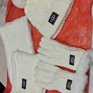 UGG set, comes with new gloves , scarf with matching hat. All three for one price. Very nice e new without tags. Never worn before. I bought this for my mother for Christmas and she didnt want it. So someone can enjoy these items. I will ship next day.