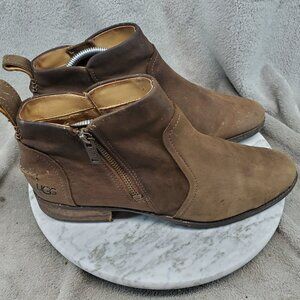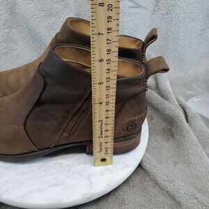 Ugg Shoes Womens Size 10 Brown Leather Aureo II Short Zip Ankle Boots *Read*