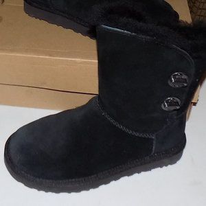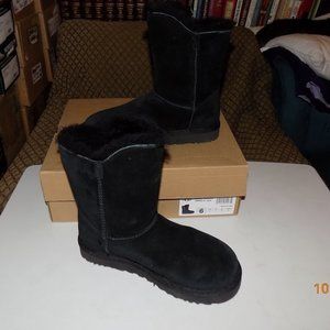 New in original box EU37 US6 1" heel 8" shaft Side turnlock closures Cushioned insole Leather upper/100% wool UGGpure or genuine shearling lining/rubber sole