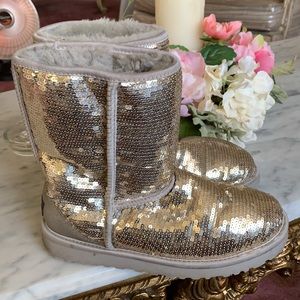 Silver Ugg boots. Show signs of wear. Size 8. Maybe one or two sequin missing but not noticeable. Please see pictures.