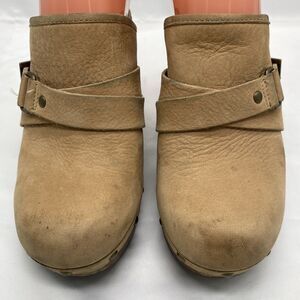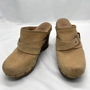 Ugg Size 6 Leather Boho Natalee Studded Wedge Slip-on Clogs Buckle 1001315 EU 37. Approx 3 1/2" wedge heel.