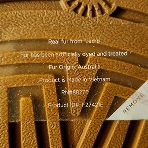 @maryharrer Hello, the sticker on the bottom of the Ugg slipper states real fur is from lamb. Fur Origin Australia and product was made in Vietnam