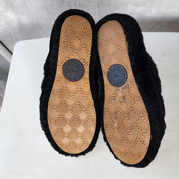 Ugg Slippers Womens 11 Black Fluff Yeah Logo Slide Fuzzy Flatform Shearling