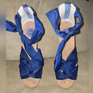 Ugg Starla Navy Blue Tie Wedge Navy Blue Ankle Espadrille Sandals Size 7