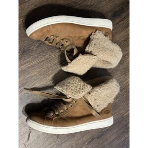Ugg Starlyn Shearling High-top Sneaker In Chestnut Leather Size 8.5 Tan LEather