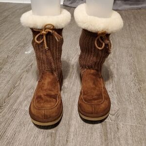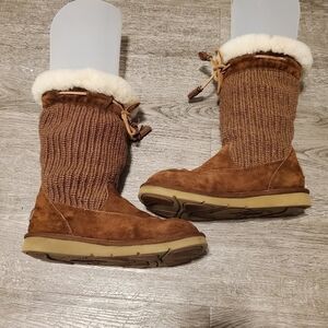 Ugg Suburb Chocolate Brown Suede Leather Shearling Crochet Boots Woman's 7