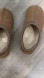 Comfortable brown suede slippers featuring a stylish embroidered trim. Perfect for cozy days.