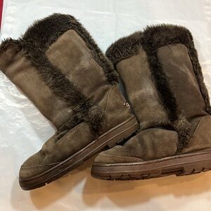 Ugg Sunburst BOOTS BROWN suede sheepskin 12” Tall wool lined pull on size 6 USA