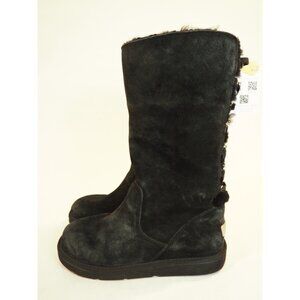 Ugg Tall Black Suede Black Sheepskin Lined Winter Boots, Size 7 (US)