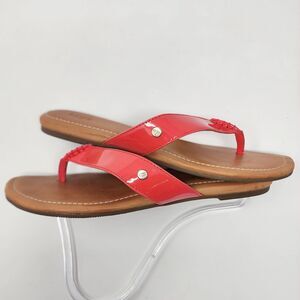 Ugg Thong Sandal Women's 9 Tuolumne Patent Flip Flop Neon Pink Logo Rivet EUC