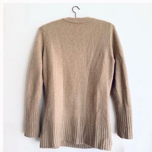 Tan wrap button closure V neck cardigan.