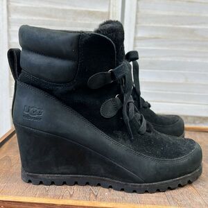 Ugg Valory Leather & Suede Wedge Ankle Boot Bootie 8.5