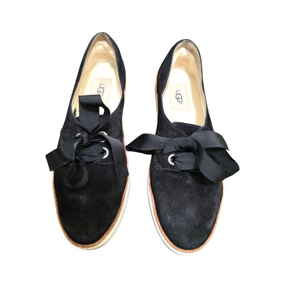 Ugg Women's Black Suede Lace-Up Flats Size 7.5 With Ribbon Detail