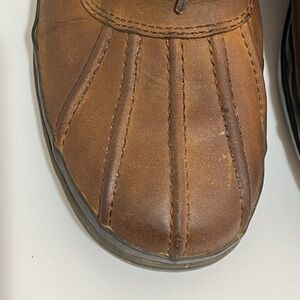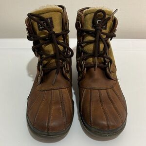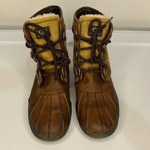 Ugg Women's Boots Cecile Duck Leather Suede Size 7 Brown Chestnut Buckles Laces