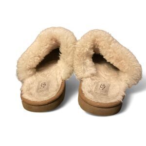 Decent condition Ugg slippers. Some staining and darkening but fur is immaculate. Still a lot of life left.