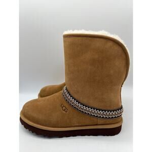 Ugg Women's Classic Short Crescent Braid Chestnut Suede Boots 1161770 Size 10
