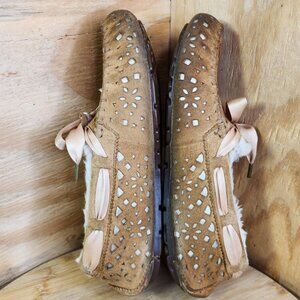 Ugg Womens Dakota Sunshine Flora Perforated Chestnut Moccasin Suede Slippers