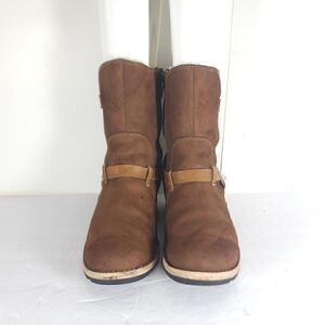 Ugg Women's Endell US 7 Brown Suede Sheepskin Lined Side Zip Moto Biker boots .