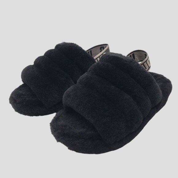 Ugg Womens Fluff Yeah Slide Sandals Black Sheepskin Size 5