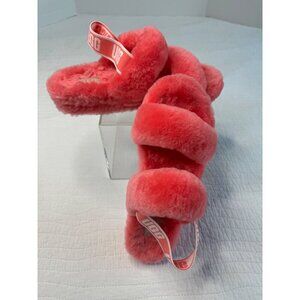 Ugg Womens SZ 8 Fluff Yeah Slide Slippers Pink Shearling Open Toe Indoor/Outdoor