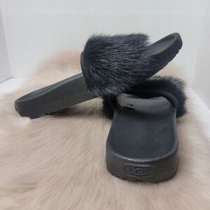Ugg Women's Sandals Slides Size 6 Royale Black Garnet Toscana Fur Slipper