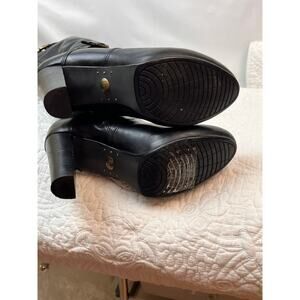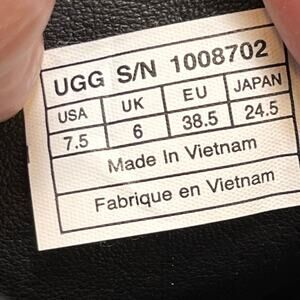 Step out in style with these Ugg Women's Black Leather Knee Boots! These boots are a size 7.5 and feature a sleek side zip for easy wear. The classic black leather design makes them a versatile addition to any wardrobe. Perfect for adding a touch of edgy sophistication to your look, these boots are in great condition and ready for a new home. Don't miss out on this stylish and comfortable footwear!
