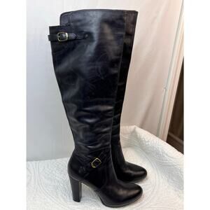 Ugg Women's Size 7.5 Black Leather Side Zip Winter Snow Knee High Heeled Boot