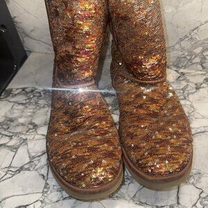 Ugg Women’s Size 8 Classic Short Sparkle Sequin Copper Red Gold Leather