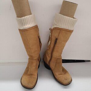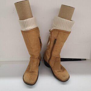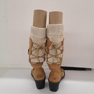 Ugg Women's Tan Cream Slip On Boots Block Heel Size 7