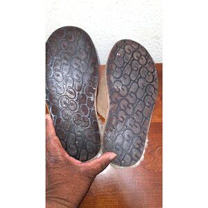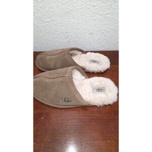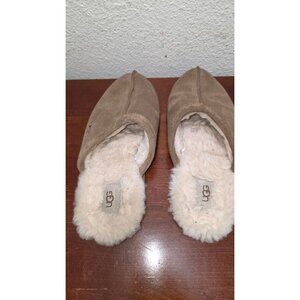 Ugg Womens Tan Suede Scuff Slippers With Shearling Lining And Rubber Sole Size 7