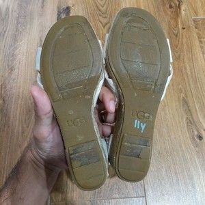 Ugg Women's Yarrow Wedge Heel Strappy Bow Sandal Natural Beige Canvas Size 7.5