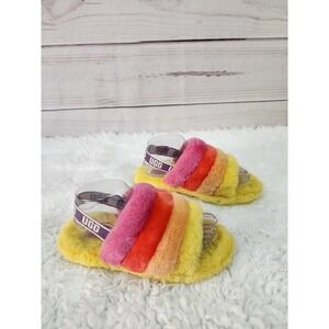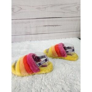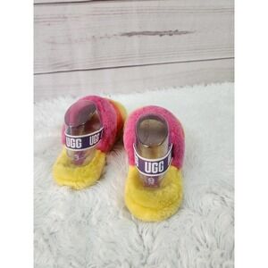 Ugg Women's Yellow Rainbow Sheepskin Fluff Slide Slipper Sandal Size 6
