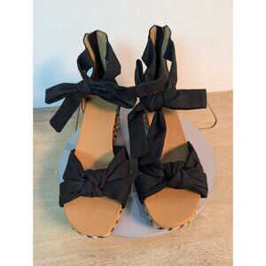 Ugg Yarrow Wedge Heel Womens Size 8 Black Strappy Bow Sandal Casual 1119992