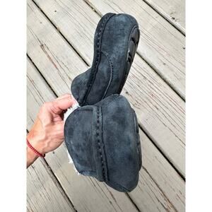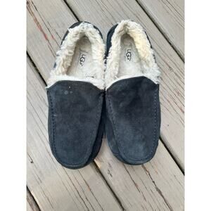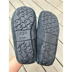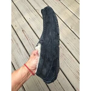 Ugg black slippers ASCOT suede leather sz 8 us men shoes moccasins shearling fur